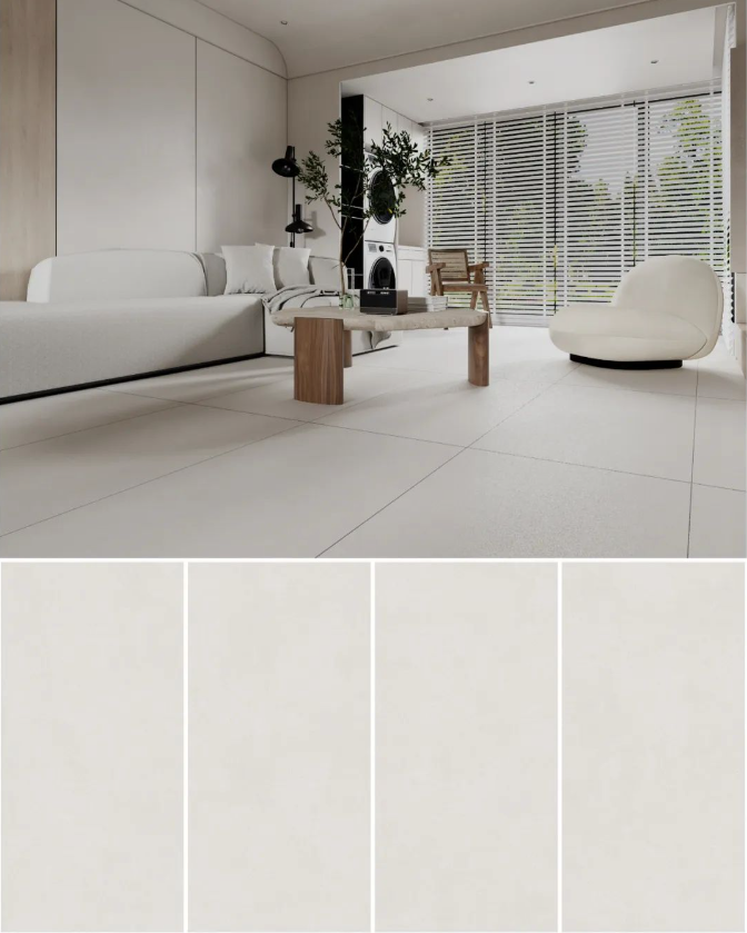 宋素丨凡古磚采用細沙干粒半拋技術,釉面附有顆粒晶體,致密度更高,凹凸肌理增強表面附著力,防污亦防滑。