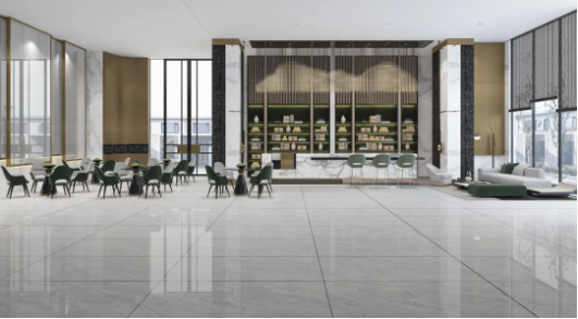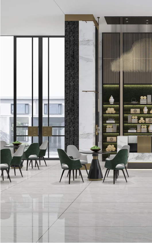拋開黑白灰容易給人穩妥的感覺,圣路易斯自帶的優雅、浪漫巧妙地融合到地面上,一氣呵成的形體關系,舒展有力,展現出恢弘大氣的空間效果,讓設計美出新高度。